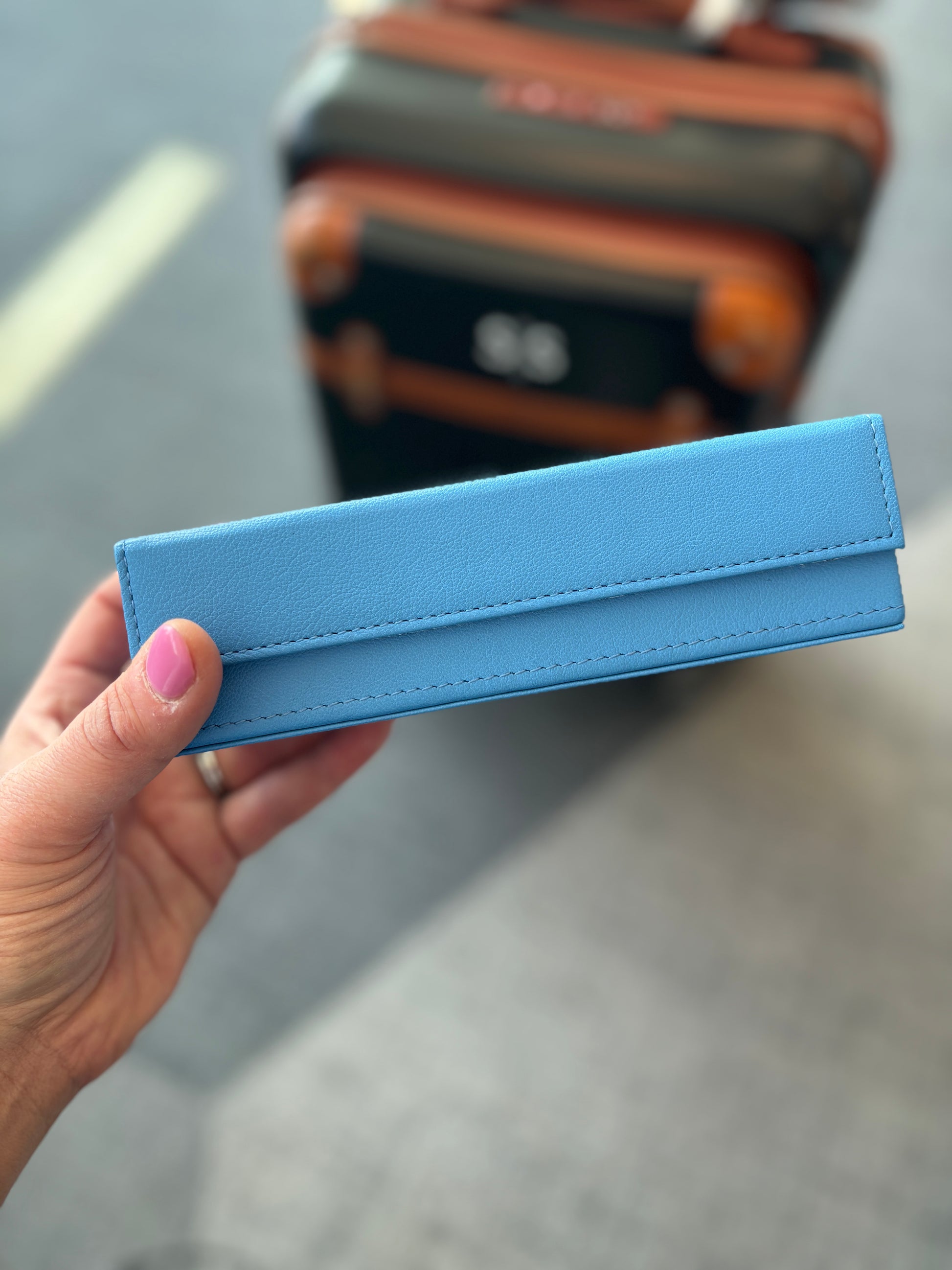 Leather pill box with self-finishing 3M sticky top to add your favorite stitched canvas.